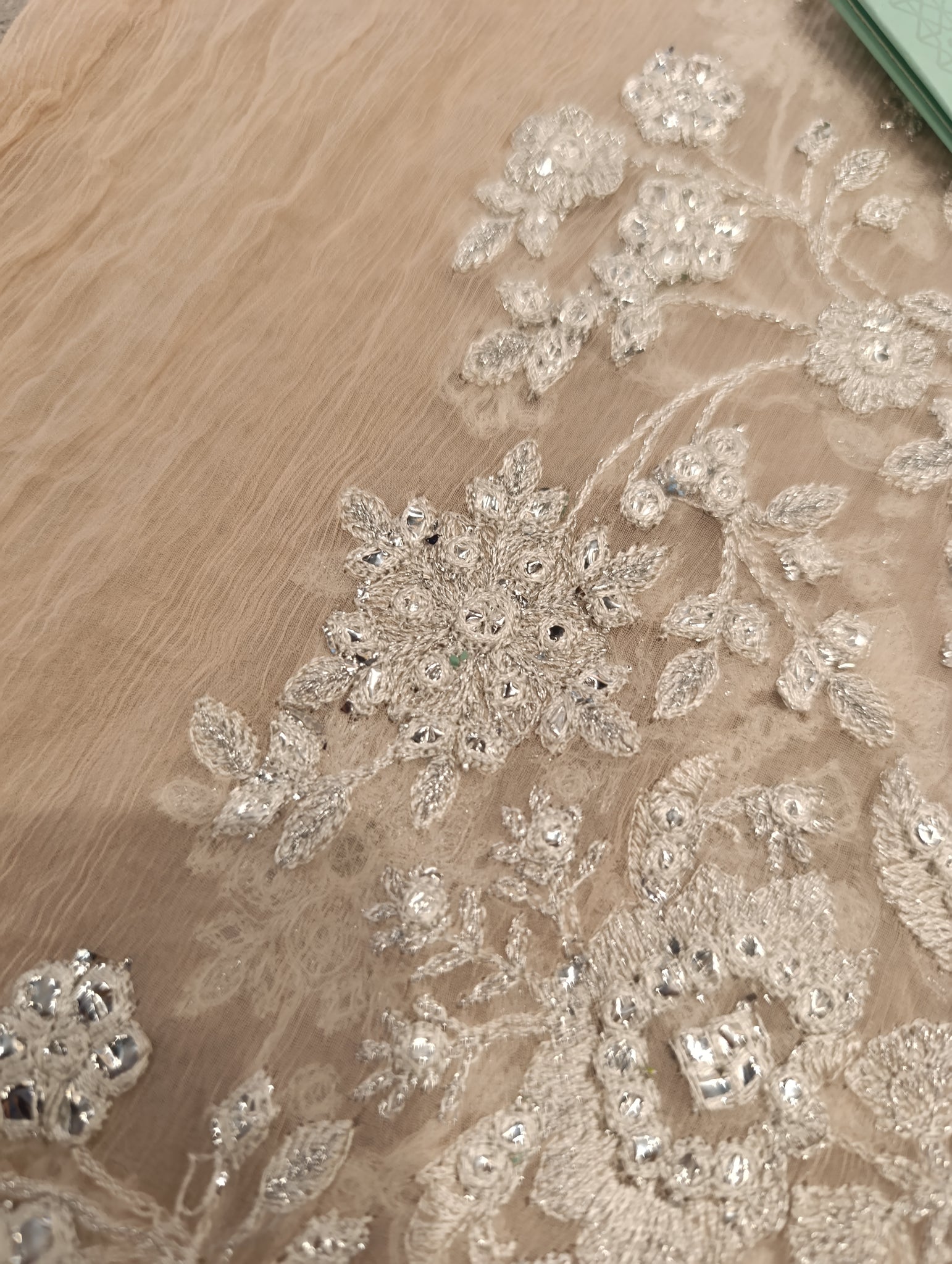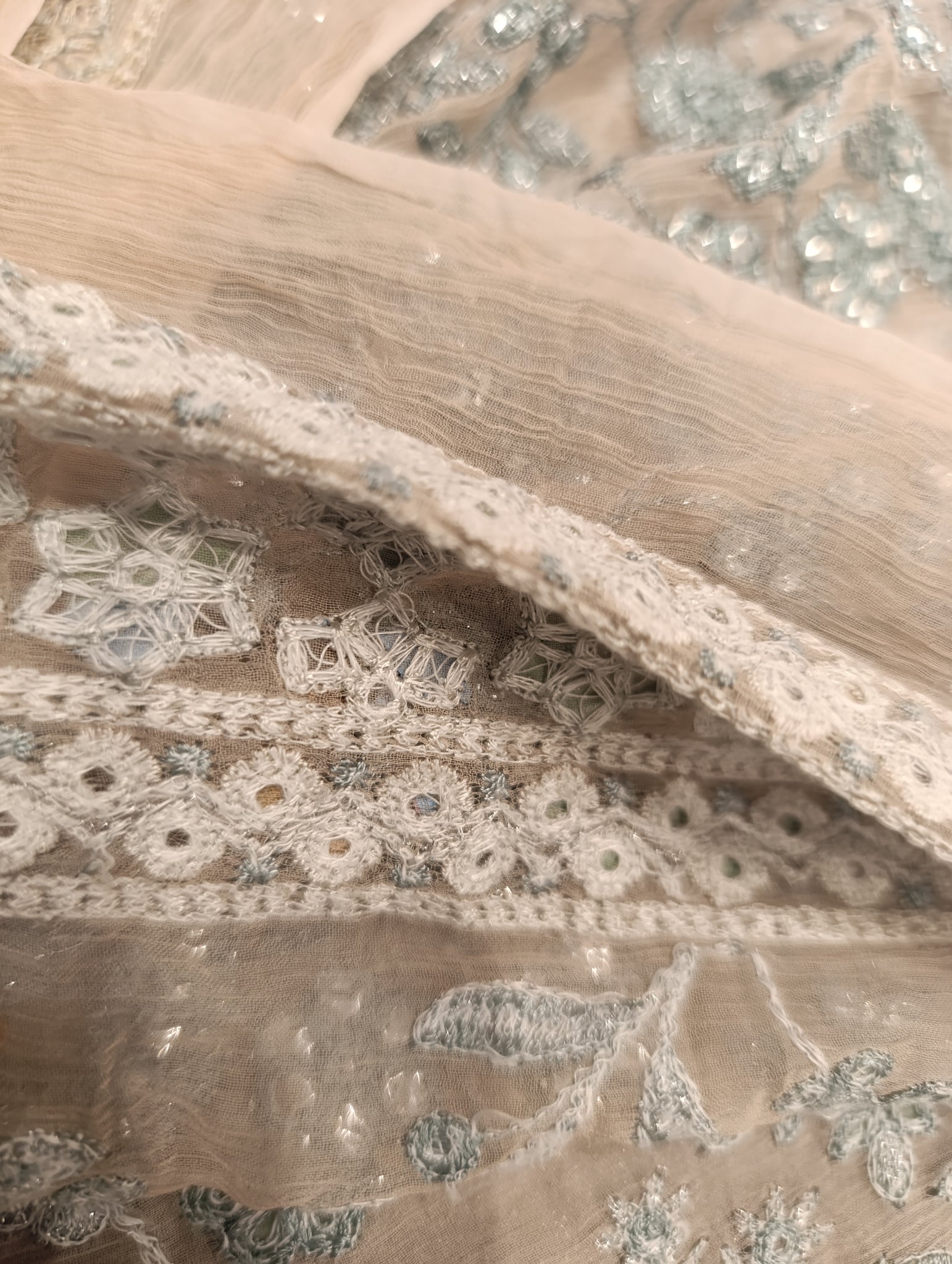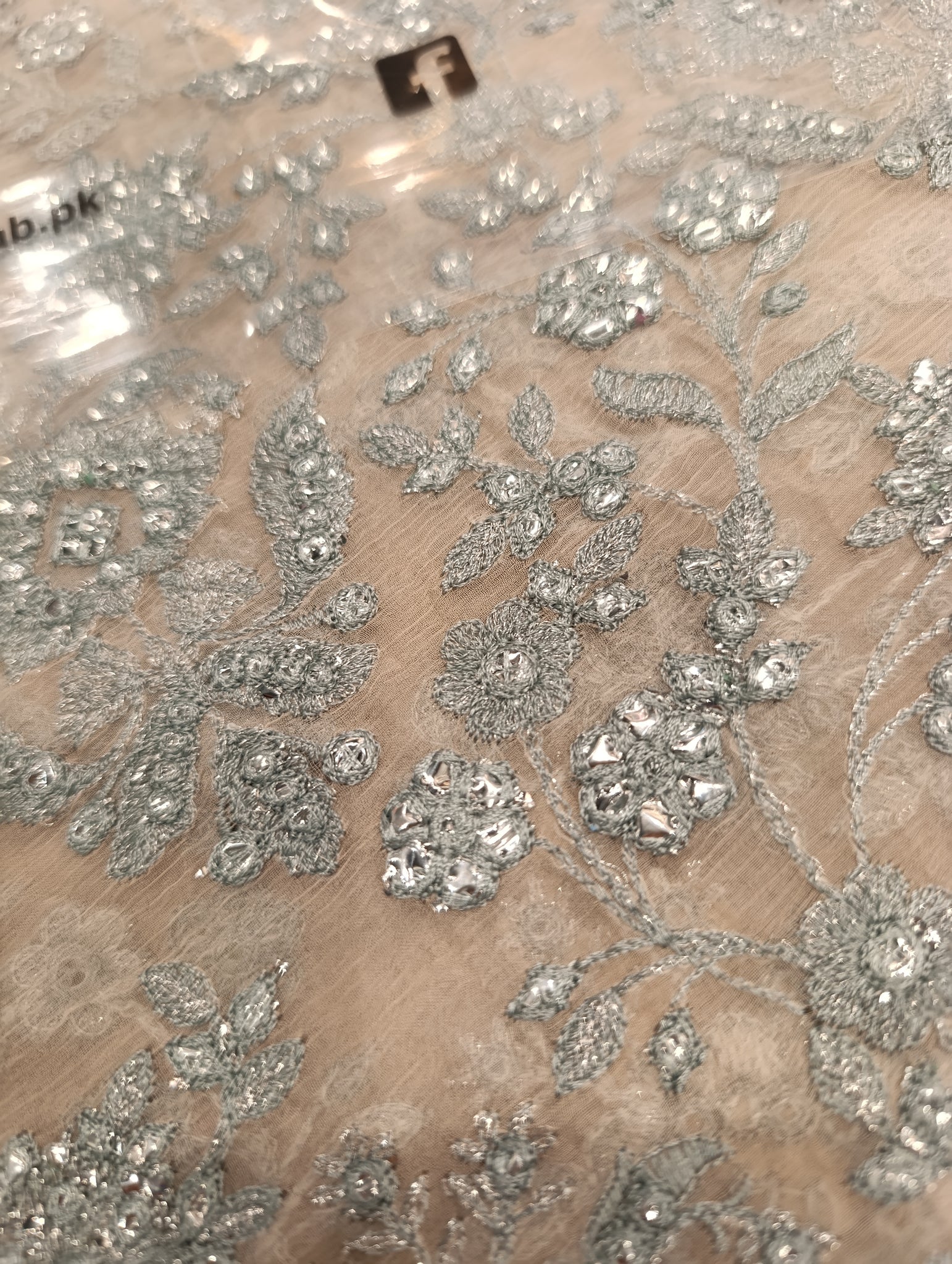 Intricate Embroidery With Panni, Sequin & Tilla Detailing In Ombre Threads.