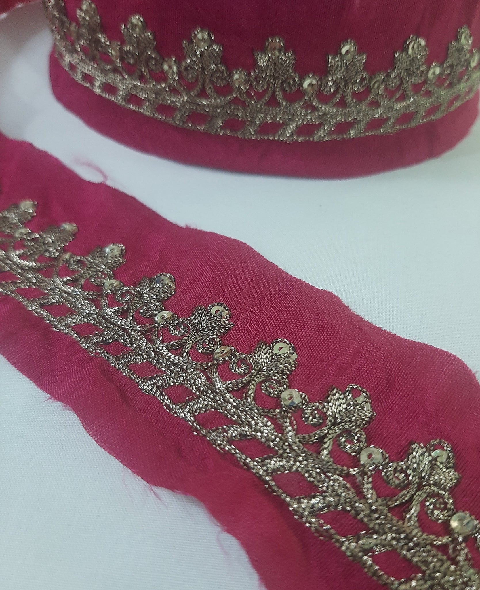 Heavily copper tilla embroidered . Golden sequins embellishment.
