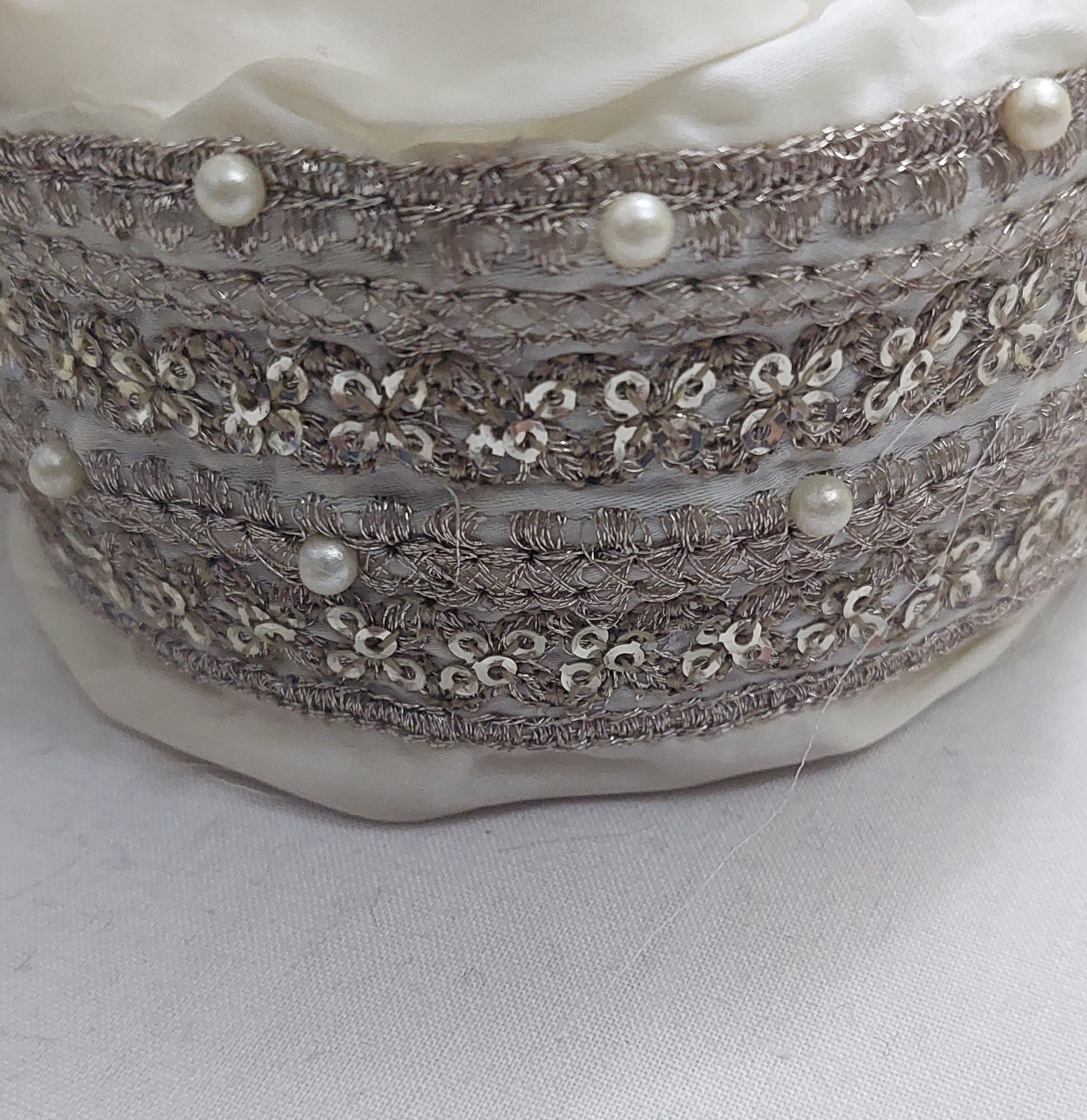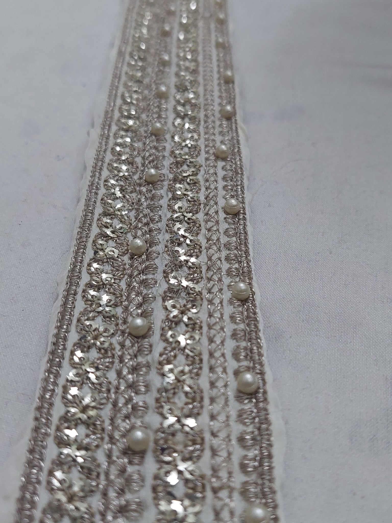 Golden tilla embroidered with golden sequins and punched pearls embellishment.