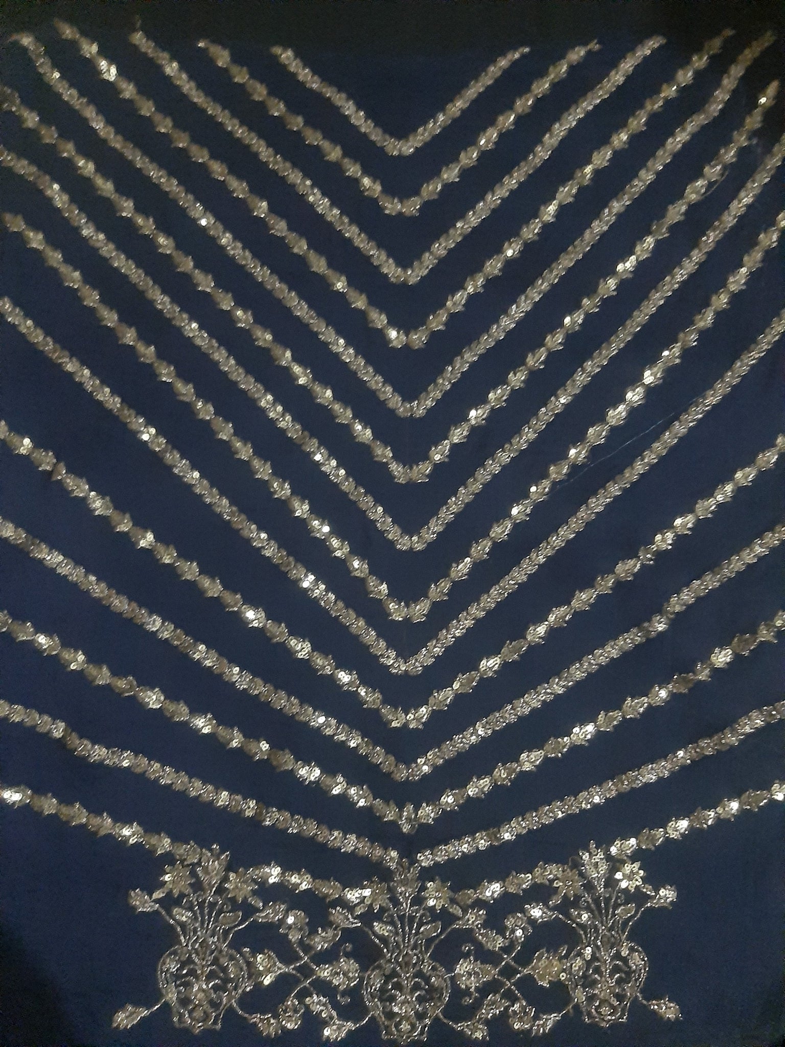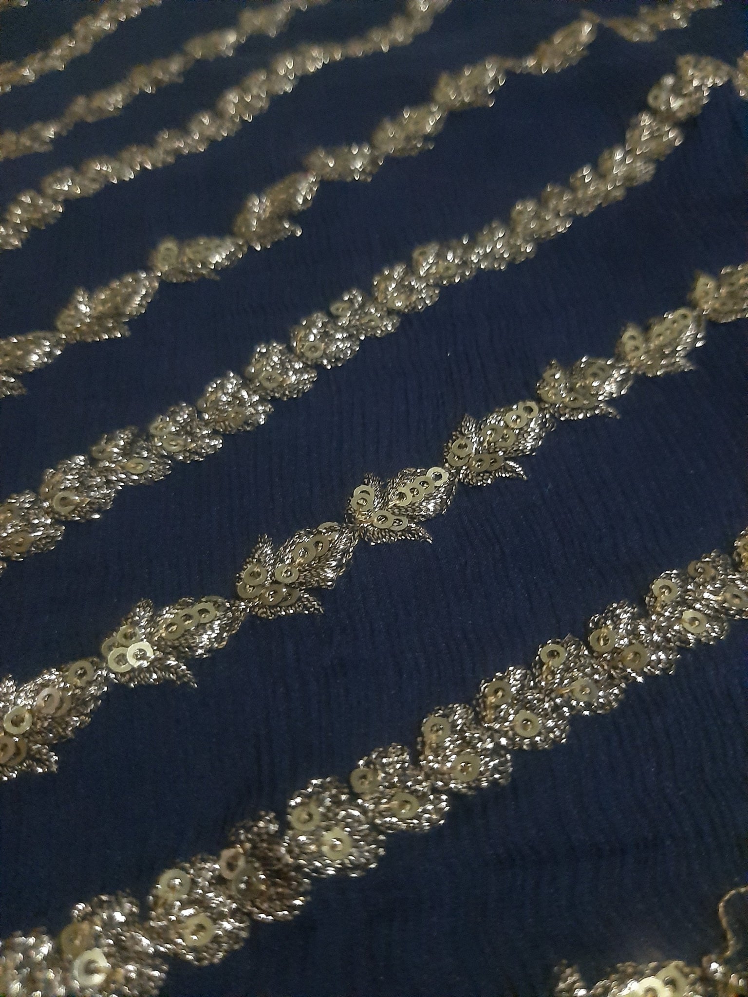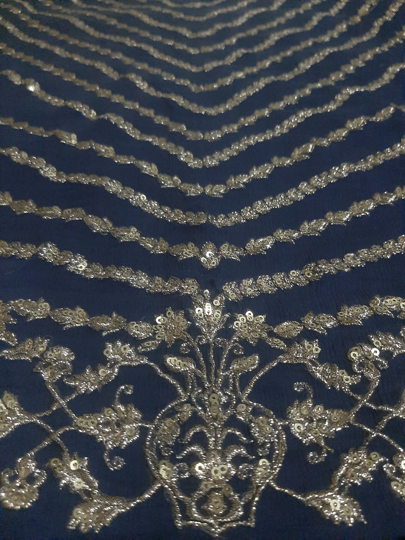 Fully copper golden tilla embroidered with matt golden sequins embellishment.