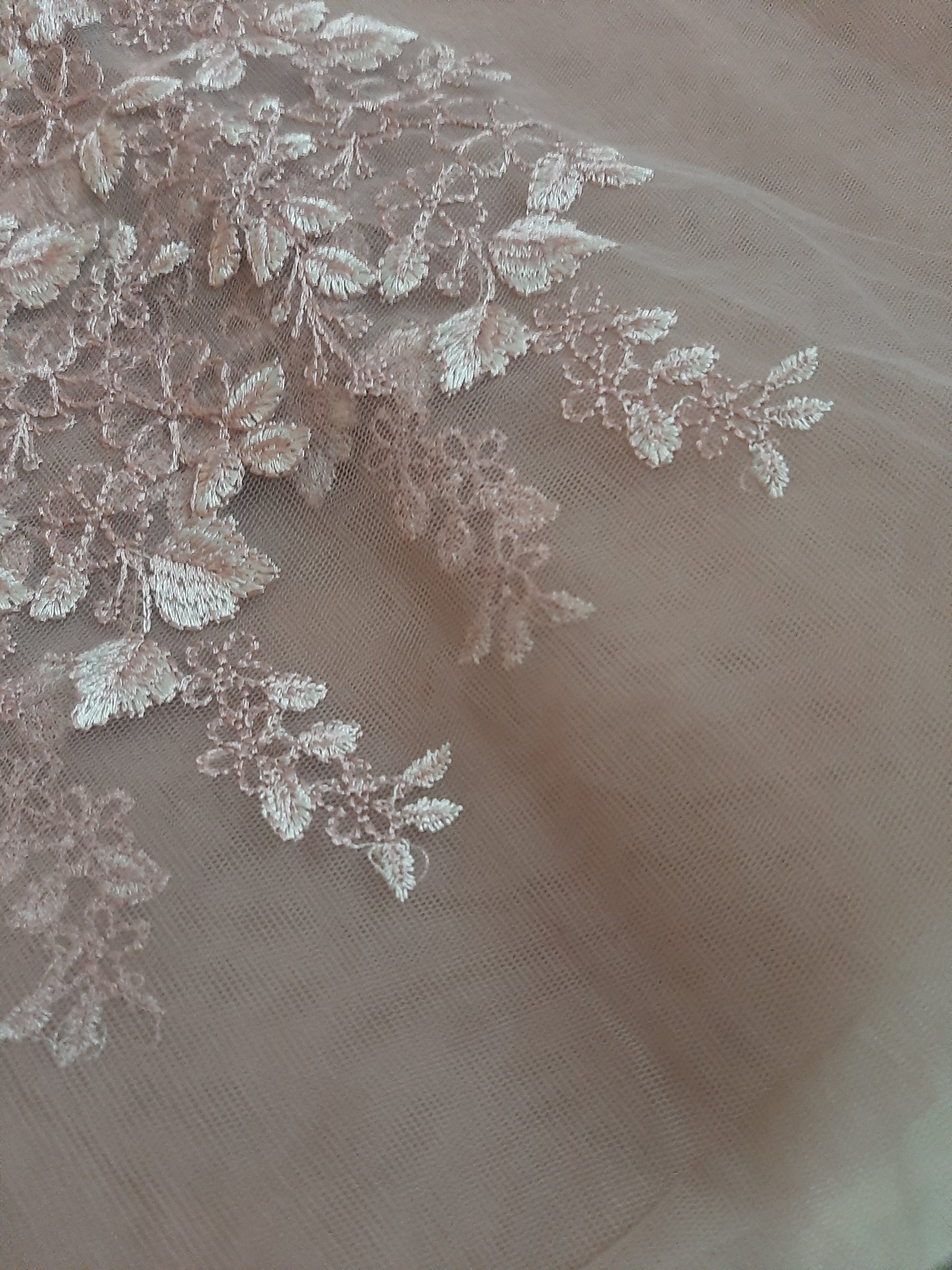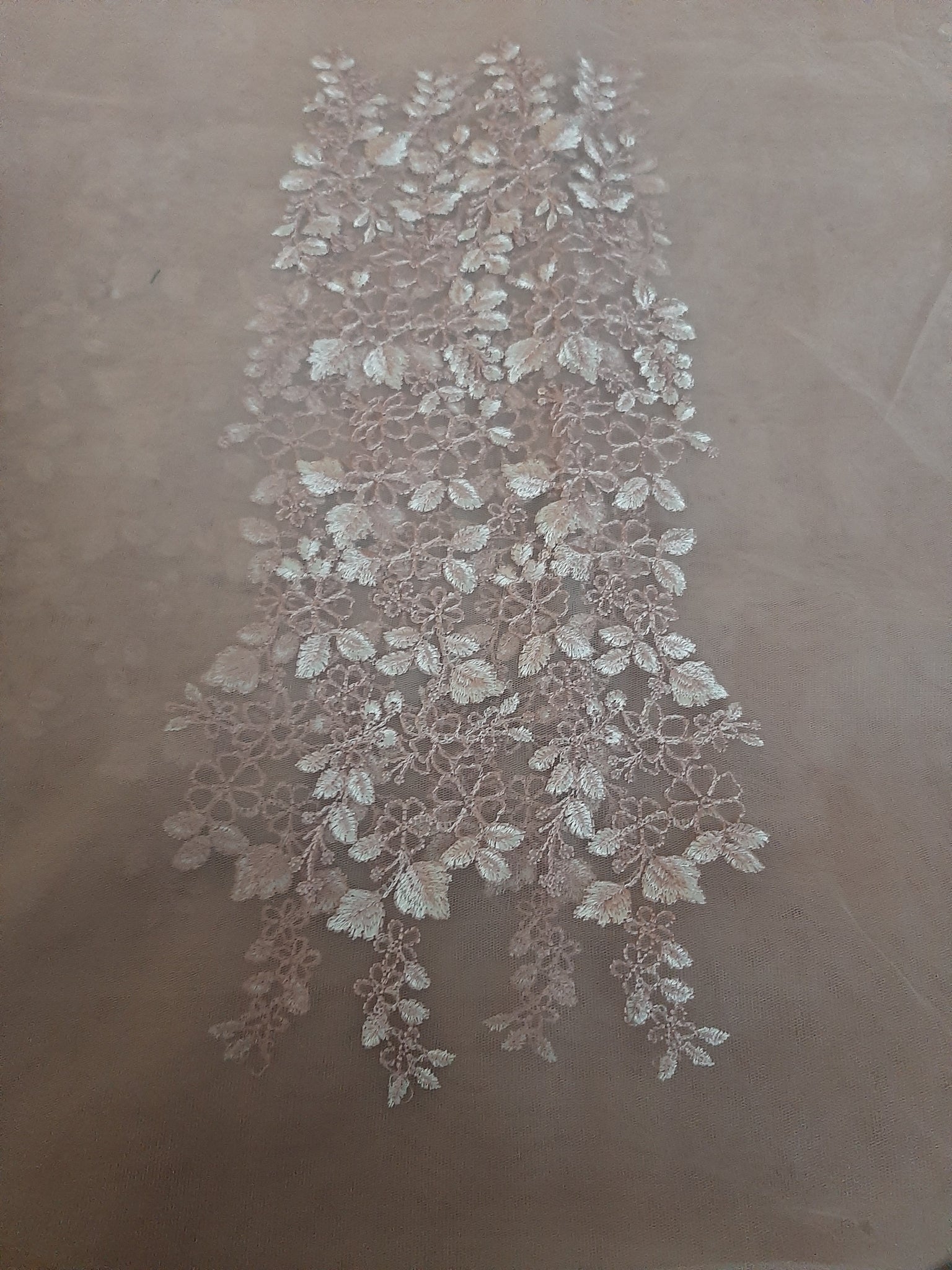 Fully thread embroidered and transparent squins embellishment without 3-D flowers a big bunch on net sleeves.