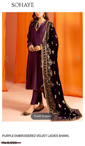 Sohaye by Dinners Shawl Velvet Ready to wear