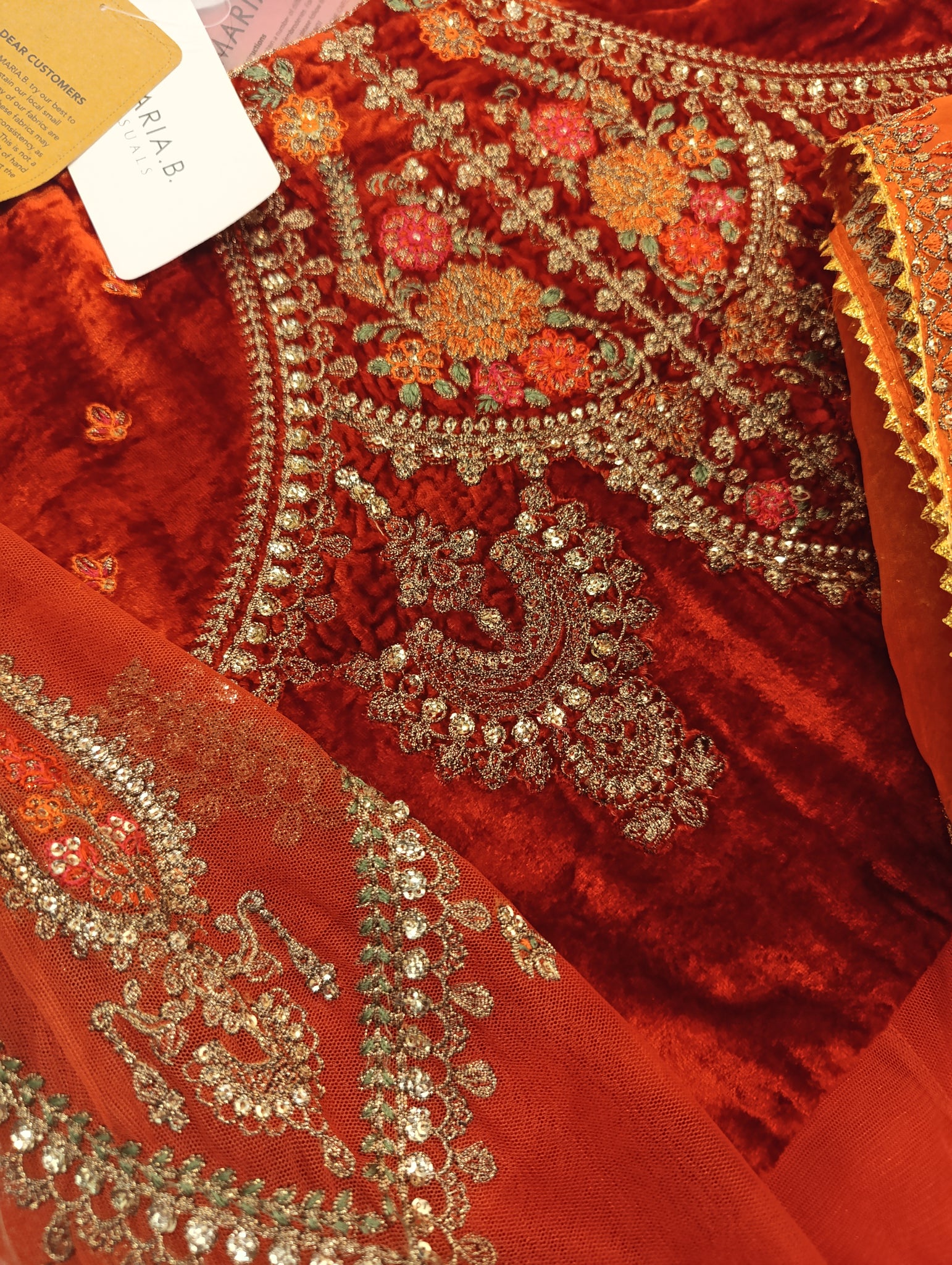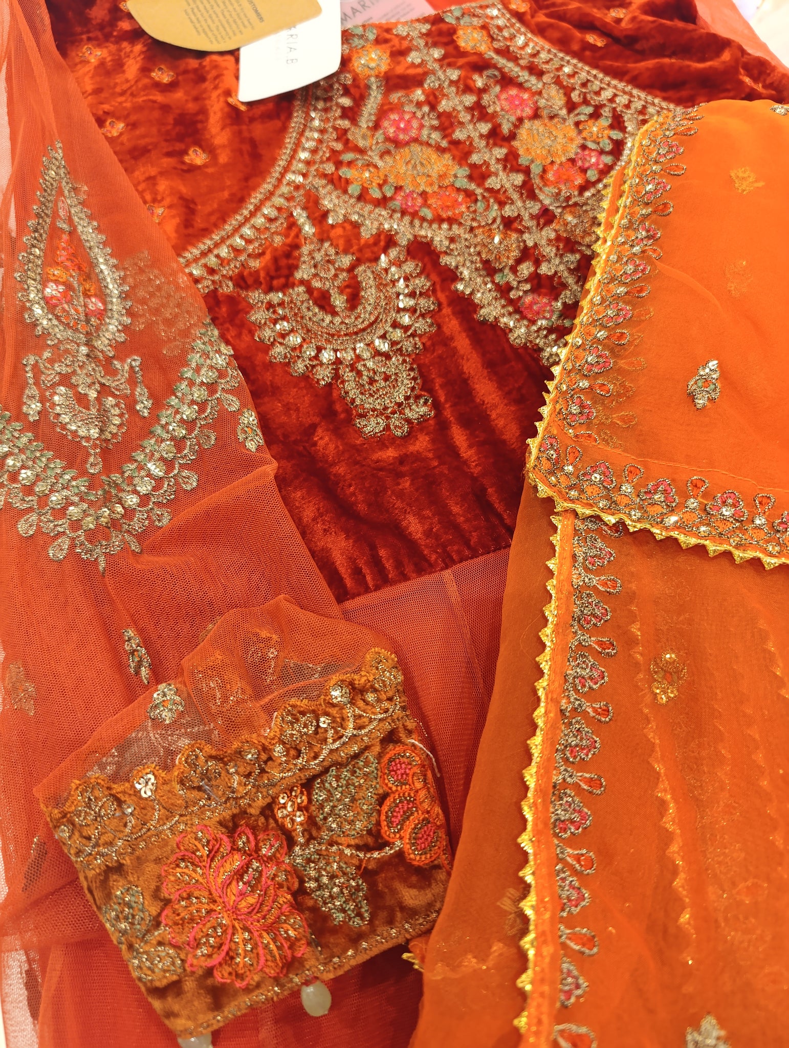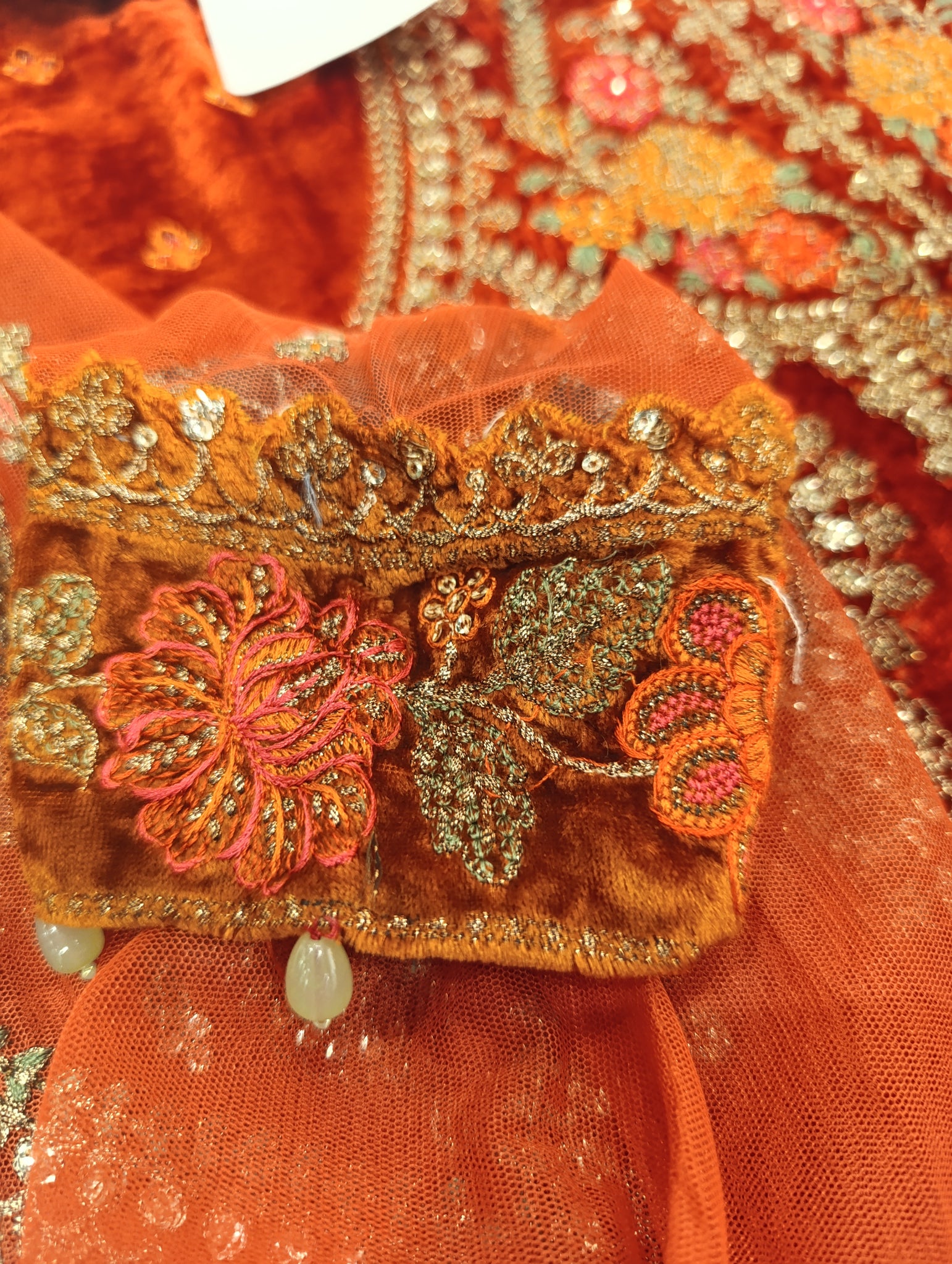 Heavily copper gold tilla embroidered with golden sequins embellishments frock and duppta